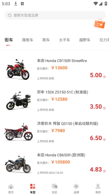 骑士的应用,提供了在线看车、摩托车报价大全、摩托车评测、改装、越野、电动车测评。