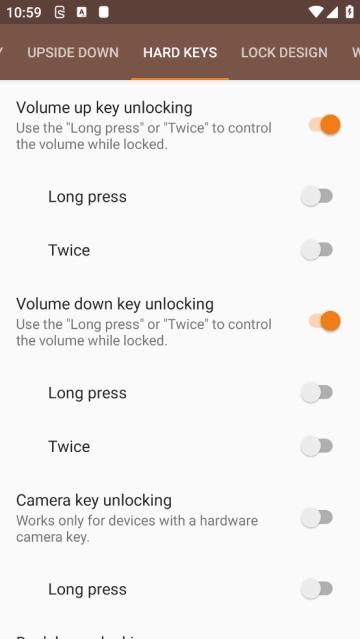 4、通过长按音量键或双击音量键实现锁定操作等多种方式可选