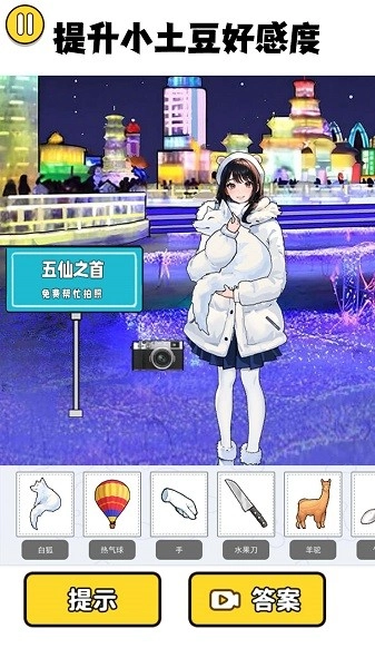一款休闲益智小游戏,讲述南方小土豆前往北方冰雪城旅行的故事。在旅途中,你将领略北方独特的冰雪风光,还需要帮助小土豆用拍照的方式记录下这些美景,快来挑战关卡吧!