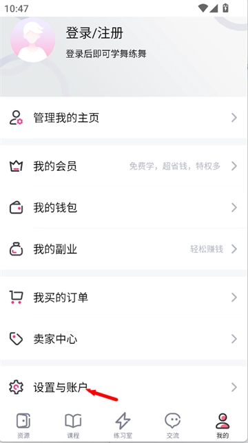 2、在个人中心页面中,找到并点击“设置与账户”选项,进入账户管理与设置功能界面。