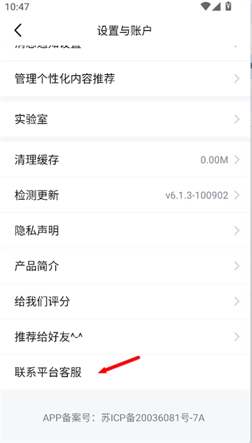 3、进入设置与账户页面后,点击“联系平台客服”按钮,就能迅速开启与平台客服的沟通咨询。