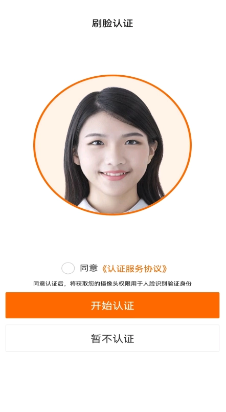 请将人脸正对屏幕并置于识别框内,完成眨眼动作,进行认证。