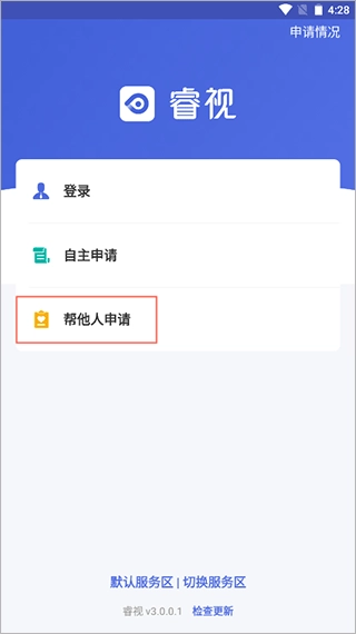 1、打开睿视,点击“帮他人申请”。