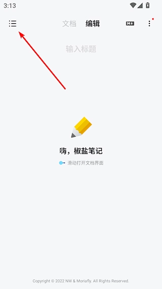 1、打开椒盐笔记,点击左上角的按钮;