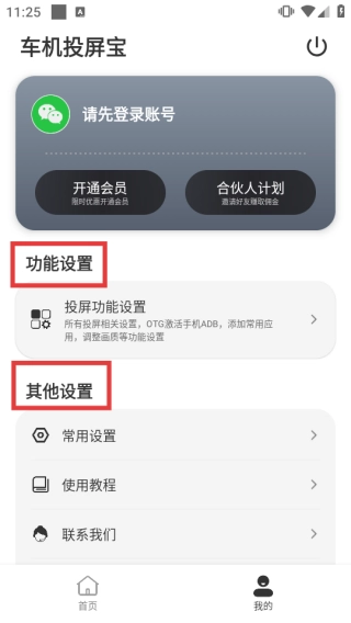 1、在车机投屏宝首页,点击底部【我的】,进入个人中心。