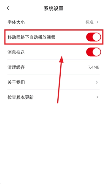 点击移动网络下自动播放视频后面的按钮即可关闭