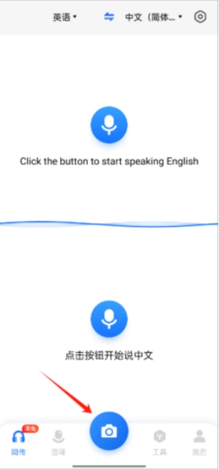 1、在主界面,点击底部中间【相机】图标,进入拍照翻译模式。