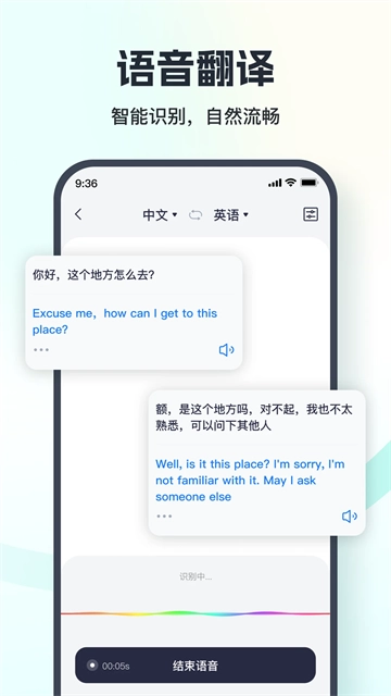 通过麦克风输入语音内容,智能识别成文字内容后,可翻译成各类语言