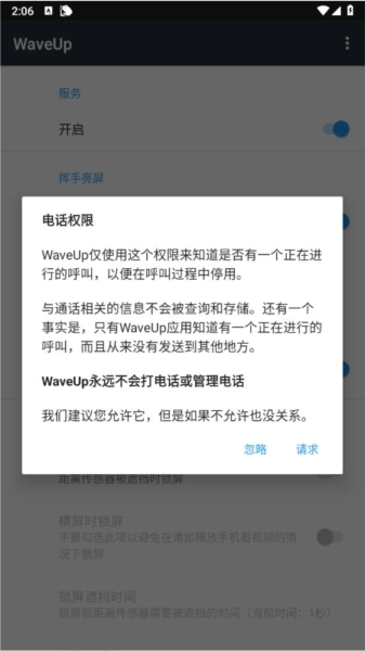 2.开启权限:打开WaveUp应用,根据提示授予所需的权限,特别是距离传感器的使用权限。