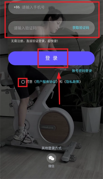 请输入手机号及验证码,勾选同意《用户服务协议》与《隐私政策》,随后点击登录,即可完成操作。
