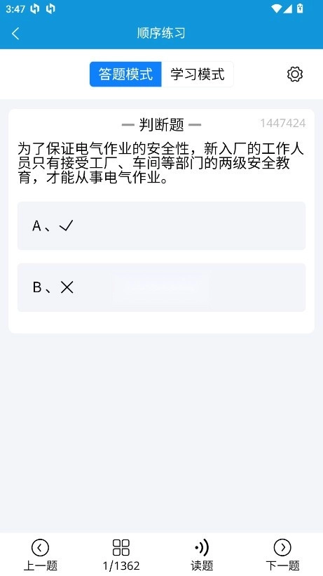 实用的电工考试软件,这里有非常优质的题库,你可以随时随地刷题,同时其答案的解析很细致,你可以将经典的题型收藏起来。它还有模拟考试环节,你可以提前使用考试的节奏。