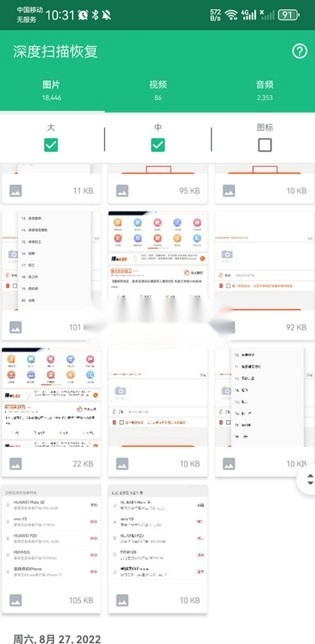 1、在其中打开深度扫描界面,系统将自动扫描以往删除的图片、视频以及音频。