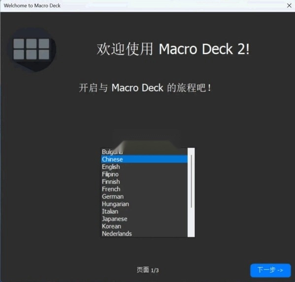 1、第一步,在电脑和手机上分别安装好对应的Macro Deck软件。接下来,在电脑端的Macro Deck中,将语言设置为中文。