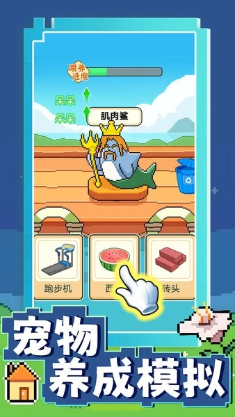 宠物养成模拟器是一款专业的鲨鱼模拟养成小游戏,在游戏里,玩家会领养一条可爱的小鲨鱼,它每天的饮食和玩乐,都由你来决定!