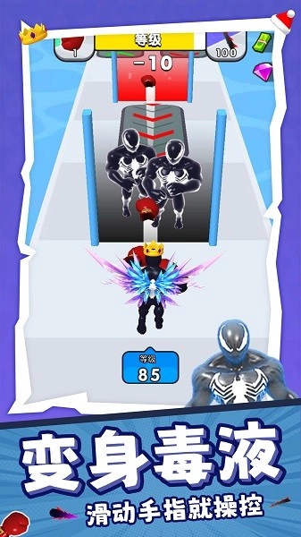 这是一款很有意思的反英雄题材跑酷游戏,主角是蜘蛛毒液,玩起来相当有趣。玩家将化身为能够成长进化的毒液幼体,在游戏过程中,你可以拾取地面上的道具来不断强化自身。