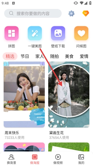 海量精美海报模板,让你的祝福及时有趣;节日祝福、家人随拍、美食艺术,应有尽有