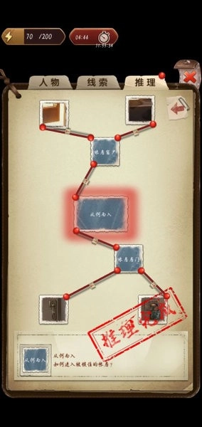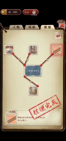 我们获得了线索,可以在这里进行分析,分析完成,然后添加到推理里,分析线索需要需要消耗能量,找寻线索要消耗体力,过段时间它会自动回复。