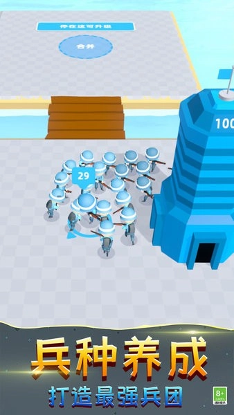 基地防御3D版为您带来超棒的兵种养成玩法,您可以在这里参与两军对战,和您的士兵并肩作战,还有多种士兵可供合并,开局就能打出超强组合!