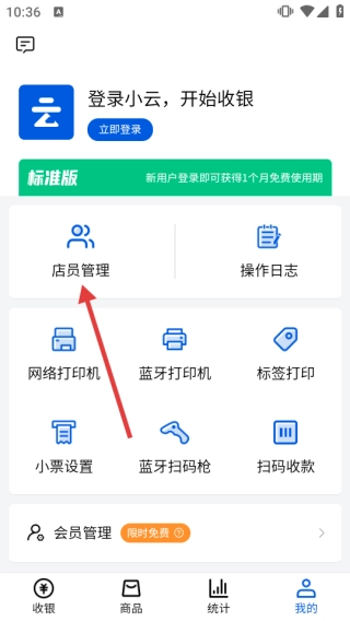 2、在个人中心,选【店员管理】,跳转小云收银登录页。