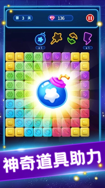 2、全新升级 炫酷特效,闪电道具超好玩,拼智力,比技巧,一触即发,玩转魔法糖果。