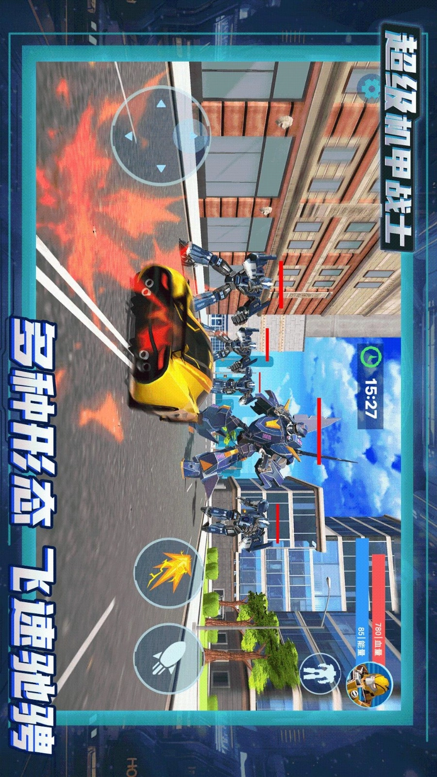 4、在城市机甲战士里,玩家能够自由操控自己的机甲英雄,运用各类技能参与战斗,还能释放连招,带来更震撼的效果。