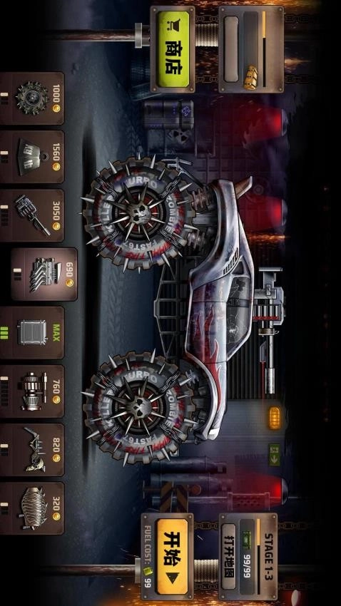 3、玩家还可以解锁最好的汽车,穿越荒凉的城市、冬季国家和其他僵尸世界,期间还会出现很多的麻烦,玩家努力的克服这些危险,消灭更多僵尸,赚取丰富的金币,解锁后期的升级工作。