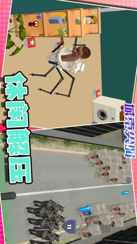 《城市尖叫》是一款趣味十足的休闲益智游戏,采用高清舒适的画面风格,搭配轻松愉悦的背景音乐,能为你带来沉浸式的休闲放松体验。游戏内设置了模拟、生存、射击等多种类型的小游戏解锁机制,全方位满足不同玩家的喜好需求。 广阔的游戏世界等待你探索冒险,你需要灵活操控角色躲避敌人攻击。深受大家喜爱的马桶人会躲藏在地图各个角落,伺机发起反击,丰富的刺激挑战内容大大提升了游戏的可玩性。随着关卡逐步解锁,你将体验到更多精彩内容,最终消灭所有敌人即可挑战成功。感兴趣的玩家千万不要错过,随时都能开启畅玩之旅!