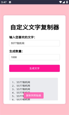1. 手机版文字复制生成器免费使用,操作界面简洁直观,无需繁琐步骤,上手快速,适合各类人群。