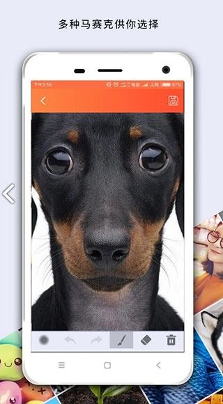 3、灵活选择材料:您可以方便地从相册中选择照片,也可以直接使用摄像机拍摄,为马赛克的处理提供了多种材料。