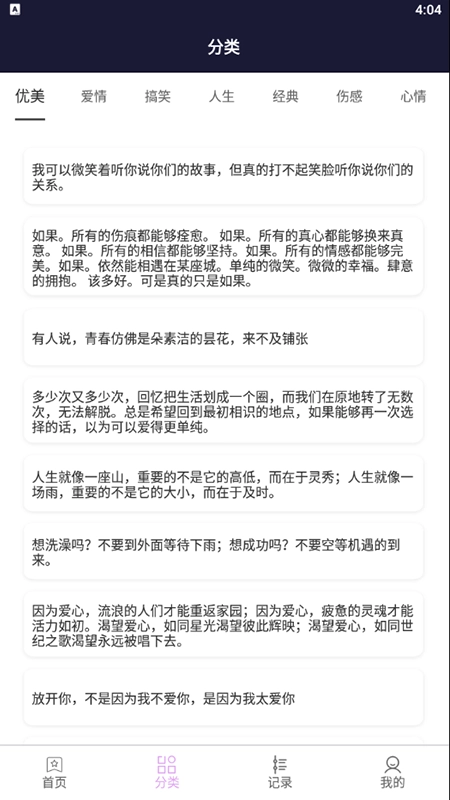 4. 这是一个聚焦简约与集中理念的句子素材库,把关注点都放在句子内容本身。