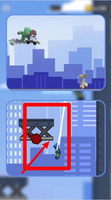 1.点击发射蛛丝:点击图中的蛛丝图标按钮即可快速发射蛛丝黏住建筑,实现高空摆荡快速移动穿梭城市战场。