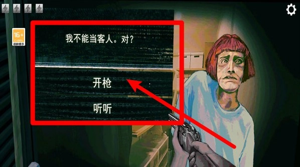 1.关键对话选择:面对紧张情境时,玩家需慎重选择“开枪”或“听听”等选项,决定故事走向与角色命运,体验沉浸式剧情代入感。