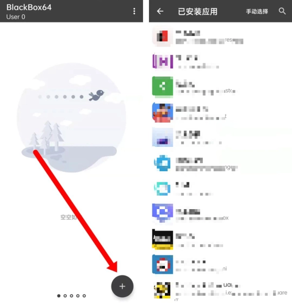 在软件首页点击右下角的“+”号即可选择软件分身,也可以手动导入选择安装包