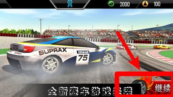 1.右下红色“继续”按钮:点击后进入选车后的比赛准备阶段或正式开赛。