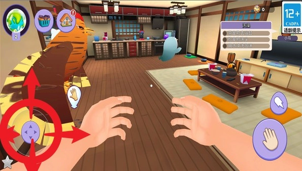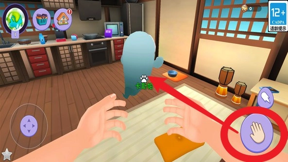 3. 点击右侧的手掌按钮,就能触发抚摸动作,进而提升球球的亲密度与好感值。
