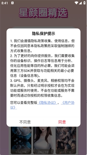 2、打开进入软件,点击同意相关的隐私协议