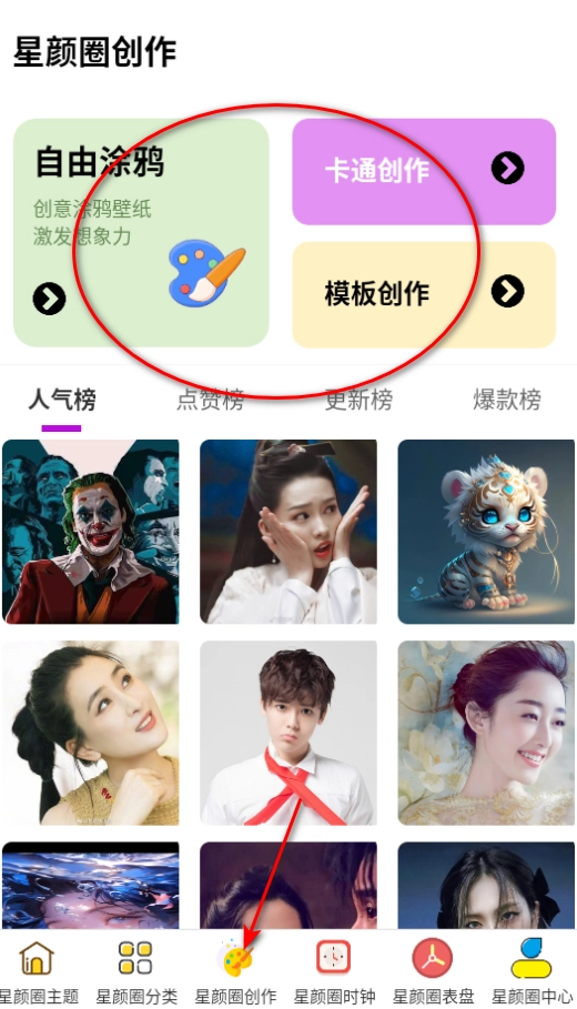 1. 打开星颜圈软件,点击“创作”,此处拥有众多功能。