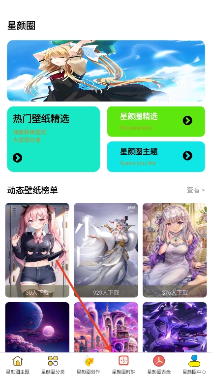 2、点击底部的【星颜圈时钟】