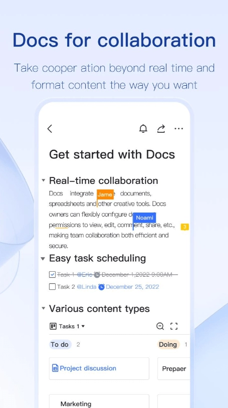 答:Lark提供在线文档、表格和演示文稿编辑功能,支持多人实时协作编辑。你可以在Lark文档中插入文字、图片、表格等内容,并与团队成员共享和协作。