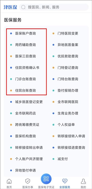 5、打开全部服务,可以查询医保服务、医疗服务等。