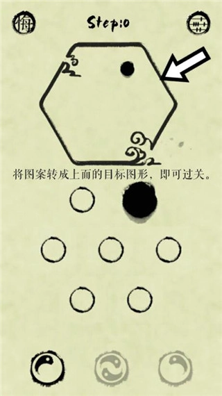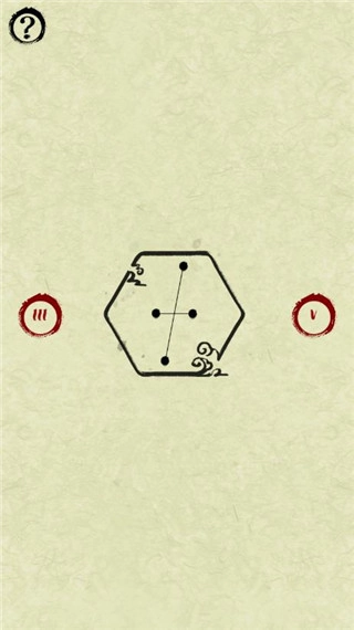 游戏玩法相当烧脑,精妙之处难以轻易参透:墨点与墨圈组成六边形阵列,点击非边缘的点位时,同一六边形顶点上的墨点与墨圈会同步联动,联动方式有三种——顺时针转动一格、逆时针转动一格,或是对角位置互换。通过这些变换,最终拼出目标图案即可通关。