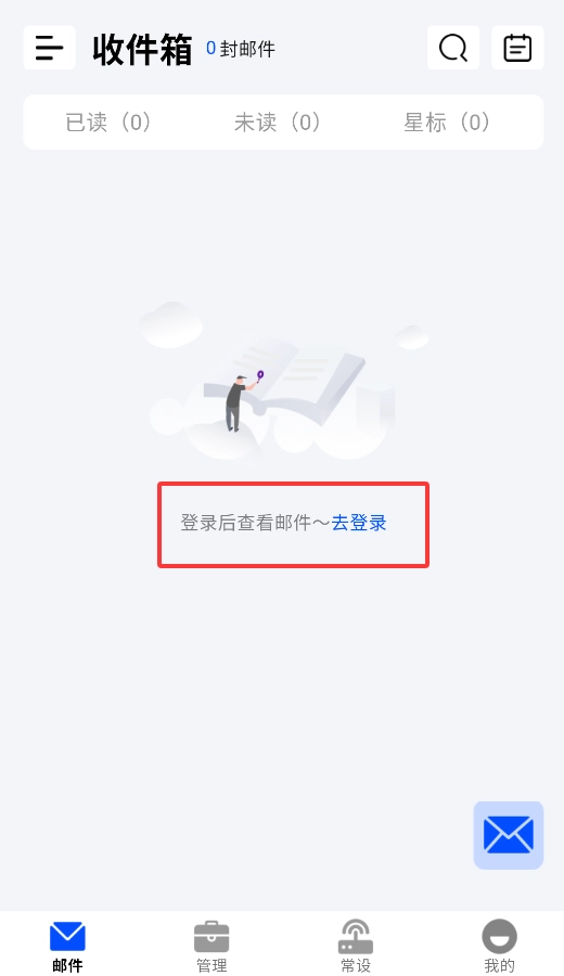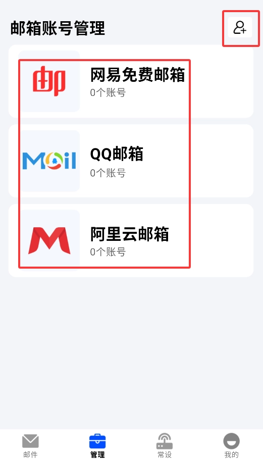 1. 启动之后,点击“邮箱登录”按键,进入到账号管理页面。