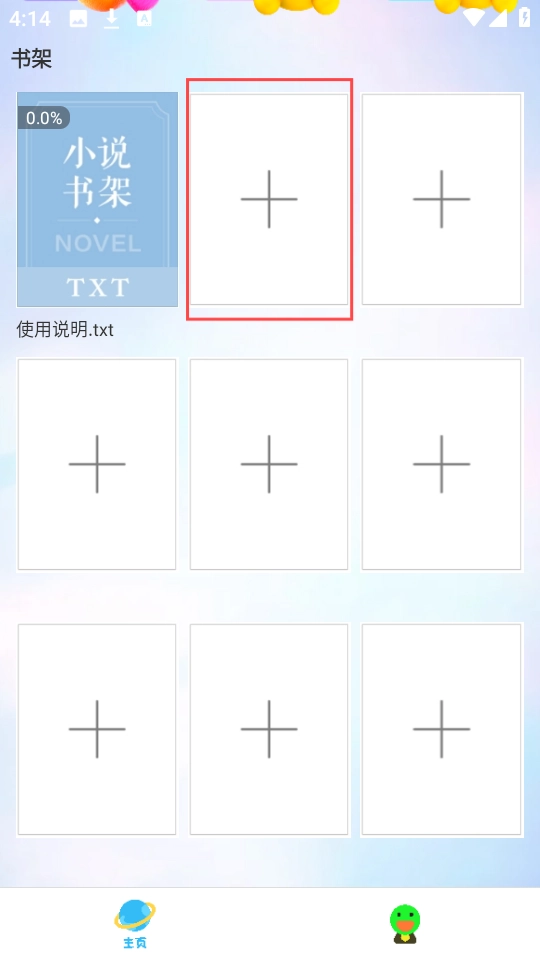 3、在首页界面点击“+”按钮,开始添加书籍。