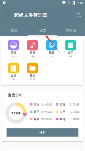 3、点击分类还可以查看各种不同类型的文件